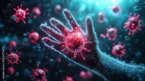 Bacteria, Bacteria visualization on a hand after contact, illustrating microbial presence and potential health implications.