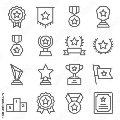 Badge Vector Line Icon Set. Contains such Icons as Medal, Prize, Trophy and more. Expanded Stroke