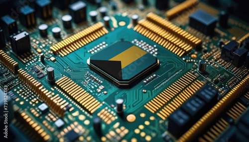 Bahamas flag on a processor, CPU or microchip on a motherboard. Concept for the battle of global microchips production.