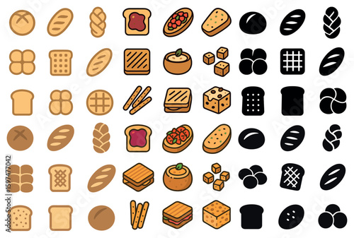 Bakery flat icons set – bread, pastry, and baking essentials symbols