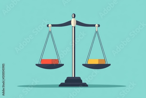 Balanced Scale with Red and Yellow Weights on Light Blue Background