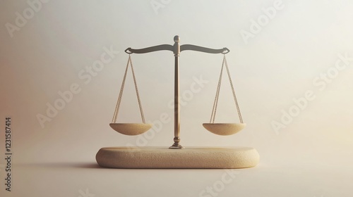 Balanced scales on stone base, neutral background, justice concept, legal website