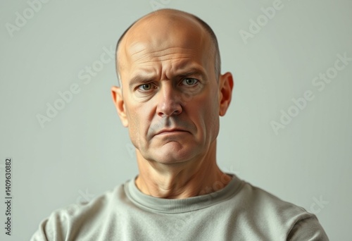 Bald man with stern expression