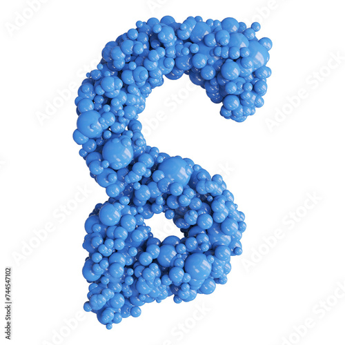 Ball blue uppercase letter S font 3d render