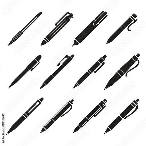 Ballpoint pen icon set collection in flat style. Office tool vector illustration on isolated background. School equipment sign business concept.