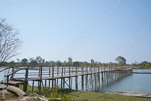 Bamboo bridge across the swamp