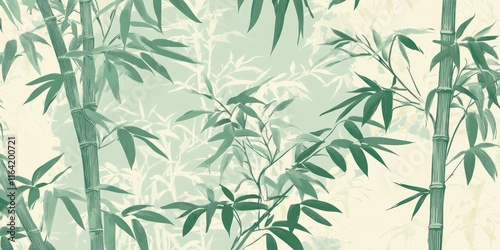 Bamboo pattern card design in jade green and ivory