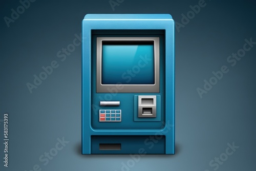 Bank ATM illustration, investment and money saving concept, blue background. Generative AI