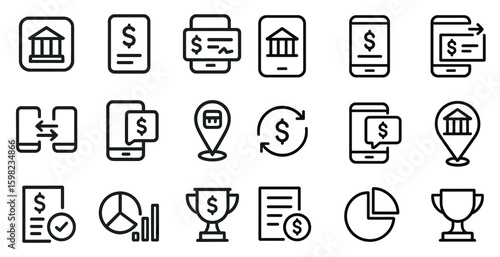 Banking and finance line icons set – outline, linear, financial symbols and tools
