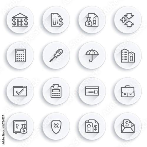 Banking flat contour icons on white buttons.