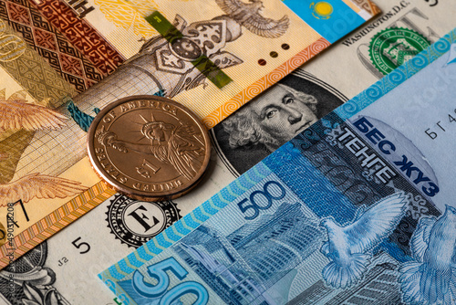 Banknotes of 500, 1000 Kazakhstan tenge and 1 US dollar