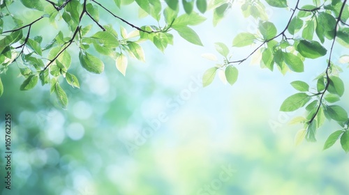 Banner featuring a selectively focused tree branch adorned with green leaves against a softly blurred garden backdrop offering ample copy space Represents natural greenery and spring ecology