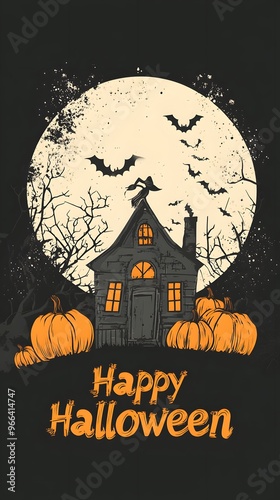 Banner, Folder, Advertisement with Text Inscription Halloween, Witches, Ghosts, Haunting, Cartoon, Drawing, Abstract Image, Texture, Pattern Background, Wallpaper, Cover and Screen of Smartphone, PC,