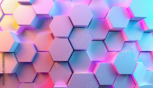 banner showing a Digital hexagons pattern abstract background, orchid funk and neon textures flat lay
