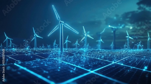 Banner Smart windturbine and solar panel technology, blue color. Digits connected
