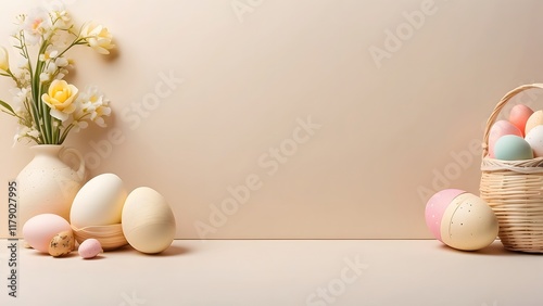 banner with empty space Without Text, Easter theme minimalist ivory background