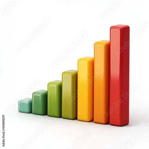 Bar chart icon depicting growth with vertical rectangular bars in various colors isolated on white background illustrating data trends and performance metrics
