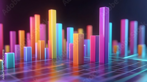 Bar chart with colorful bars rising from a digital graph