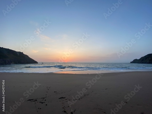 Barafundle Bay on the Pembrokeshire coast in Wales at sunrise