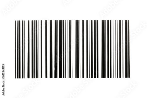 Barcode illustration, with vertical black lines of varying thickness arranged in a sequence. Its minimalist design symbolizes modern digital or retail environments, set against a transparent backgroun