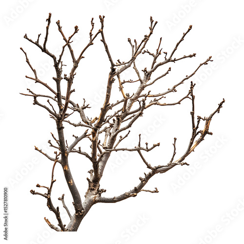 Bare Tree Branches with Buds on Transparent Background, Early Spring Stage