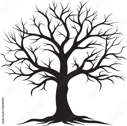 Bare Tree Silhouette with Sprawling Branches in Black and White