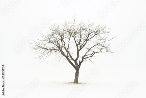 Bare Tree Standing Alone in a Field of Snow on Cloudy Day