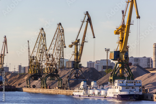 barges and cranes in river port