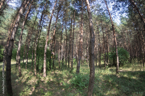 Bark of Pine Tree close up. Beautiful pine forest at summer time.