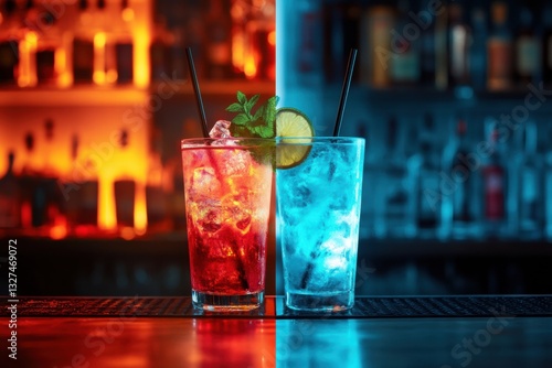 Bartender transformation showcasing basic drink versus crafted cocktail in vibrant Saint Petersburg bar Generative AI