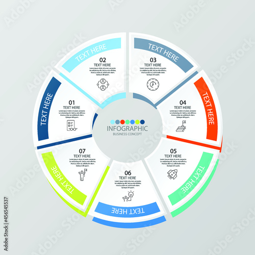 Basic circle infographic template with 7 steps, process or options, process chart.