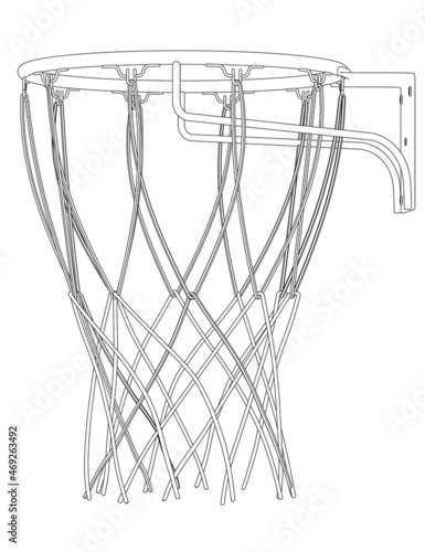 Basketball hoop contour from black lines isolated on white background. Side view. Vector illustration