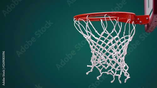 Basketball hoop net close-up against teal background. Possible use Sport illustration