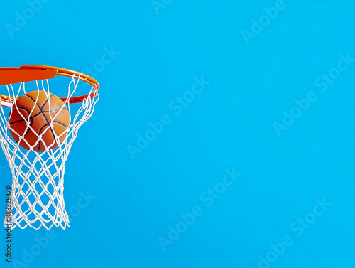 Basketball scoring a basket as it goes through the hoop and making a swish in the net