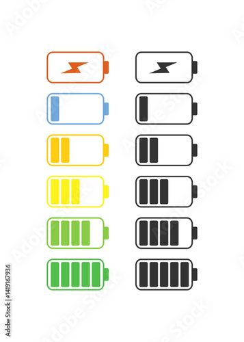 Battery charge indicator icons set, vector isolated graphic design stock illustration