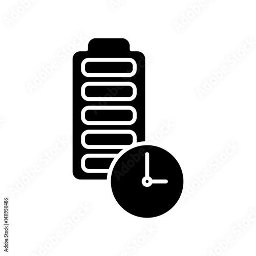 battery icon with clock, long lasting battery icon, simple flat style, illustration, logo sign symbol pictogram template, for ui or ux isolated on white for mobile app, editable