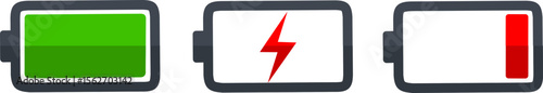 Battery Status Icons: Full, Charging, Low Battery Levels - Essential Vector Graphics for Power Management & Device Indicators.