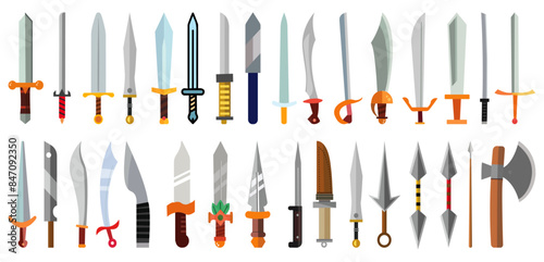 battle-axe Sword medieval weapon of knight with sharp blade and pirates knife vector illustration