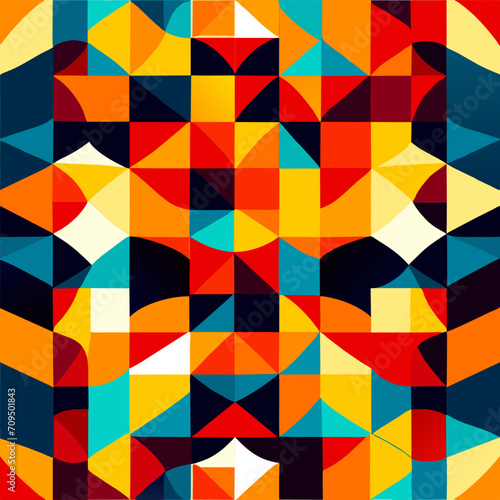 Bauhaus geometric pattern background. Abstract bauhaus style wallpaper. Colorful Bauhaus mosaic design pattern. Modern bauhaus mural print. Scandinavian minimalistic decorative ornament pattern.