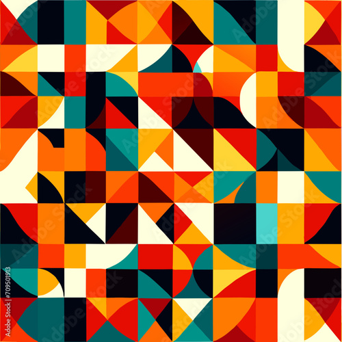 Bauhaus geometric pattern background. Abstract bauhaus style wallpaper. Colorful Bauhaus mosaic design pattern. Modern bauhaus mural print. Scandinavian minimalistic decorative ornament pattern.