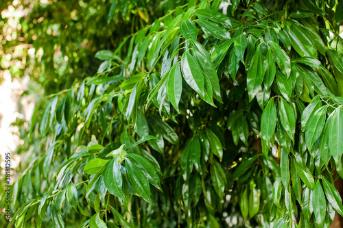 Bay leaf Bush. Green juicy Bay leaves.