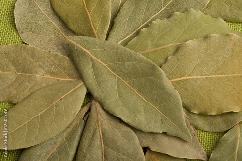 Bay leaves on green