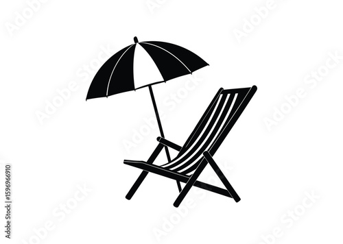 Beach chair and umbrella silhouette black vector white background
