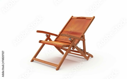 Beach Chair with Recliner and Umbrella Isolated on White Background.