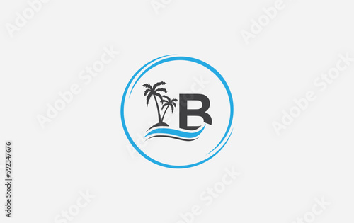 Beach tree and nature water wave logo design vector with the letter and alphabet, Water color logo vector