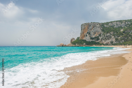 Beaches of the island of Sardinia in the Mediterranean Sea in sunlight in spring