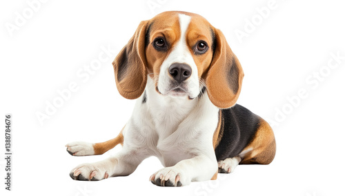 Beagle resting, looking directly at viewer