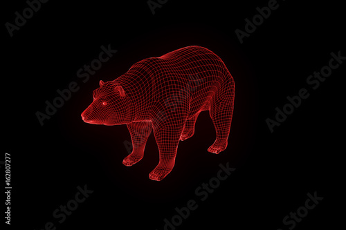 Bear in Hologram Wireframe Style. Nice 3D Rendering