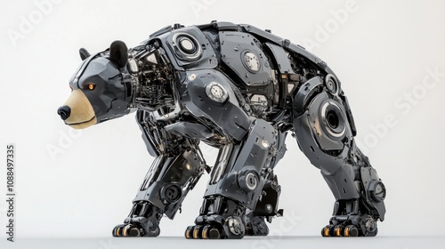 Bear Robotic, showcasing intricate mechanical details. A futuristic blend of nature and technology.