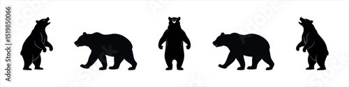 Bear Silhouette Design Set Walking, Standing, and Roaring Bears Vector Clipart